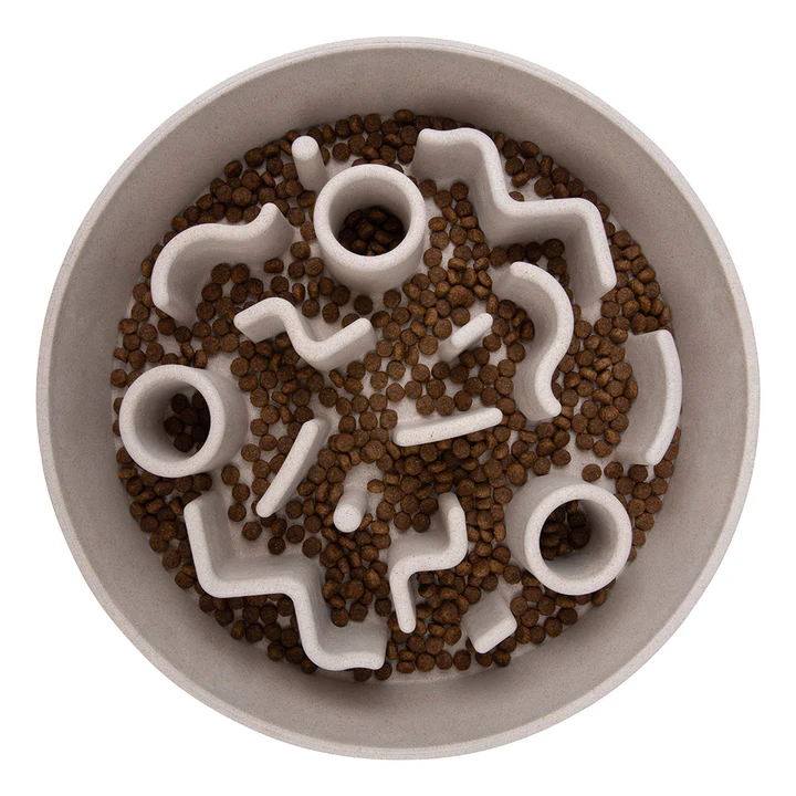 De slow feeder is verkrijgbaar in drie maten, Ø17 (small), Ø21 (medium) en Ø28 cm (large). De kleine maat is geschikt voor hondenrassen zoals een Cocker Spaniël, Beagle, Shiba Inu, Teckel en een Jack Russell. De grote maat is geschikt voor grotere hondenrassen zoals een Labrador, Golden Retriever, Border Collie, Herdershond en een grote Labradoodle.